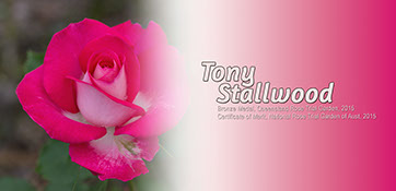 Named in honour of Tony Stallwood. The lovely pink and white floribunda is a prize winner that grows well in different climates. It won a Bronze Medal in the Queensland Rose Trial Garden and a Certificate of Merit at the National Rose Trial Gardens of Australia in Adelaide.